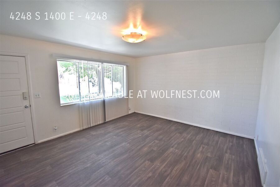 This incredible unit features an open floor plan and is conveniently located minutes from Big Cottonwood Park, I-215 and Highland Drive. It offers 2 bedrooms and 1 bathroom spread over 790 sq. ft. As you walk in, you'll find an open kitchen, dining and living area as well as a laundry and storage area. Down the hall, you'll find two bedrooms and a full bathroom. Additional amenities include hardwood flooring, 1 covered parking spot, washer/dryer hookups and a sizable back yard!