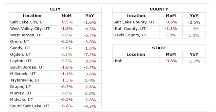 Utah’s rental market is continuing to adjust as we move into the new year. Statewide, rents dipped 0.6% month over month and are down 1.7% compared to this time last year, reflecting a steady rebalancing rather than a sharp decline. At the county level, Salt Lake County saw a modest pullback both monthly and annually, Utah County continues to stand out with the highest year-over-year growth, and Davis County posted gains both month over month and year over year. City trends show a mixed but stable picture. Most areas experienced slight monthly decreases including Salt Lake City, West Valley, and Draper but a few cities like Layton, Ogden, and Sandy posted small monthly increases. On a yearly basis, most cities remain slightly below last year’s rent levels, though a couple of pockets like Murray and Taylorsville are holding steady or seeing minor gains. Overall, the market feels measured and controlled, with landlords adjusting pricing carefully as supply and demand continue to find balance heading into spring.