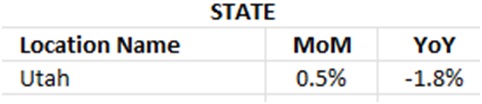In May, rental rates across Utah showed varied trends. Most of the cities experienced month-over-month increases except for Layton and North Salt Lake which reported declines in rental rates for the same period. Statewide, Utah saw a 0.5% month-over-month increase in rental rates, though rates were down 1.8% compared to the previous year.